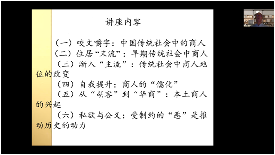 师生带来了题为“从‘末流’到‘主流’——中国商人的成长史” 的精彩讲座。本次会议通过腾讯会议在线举行,由AV淘宝