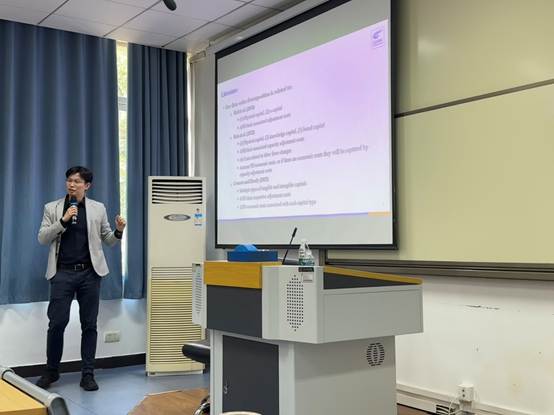 报告逻辑清晰,深入浅出,与会师生对此研究展现出浓厚兴趣。在分享过程中,曾老师与参会师生就论文研究背景、模型设计、实证结果等方面展开广泛、深入的讨论和交流。