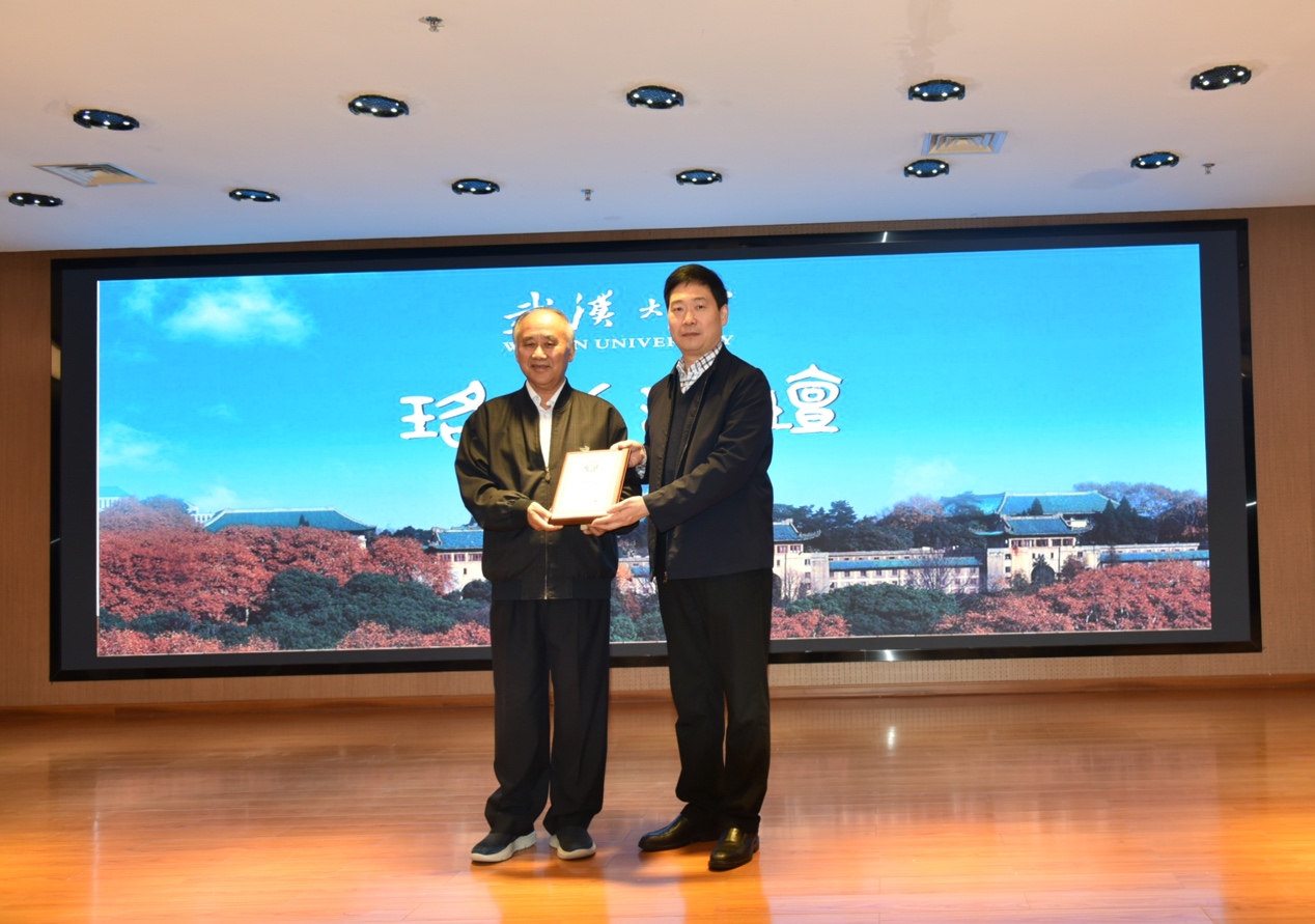 党委副书记沈壮海为其颁发珞珈讲坛纪念牌。