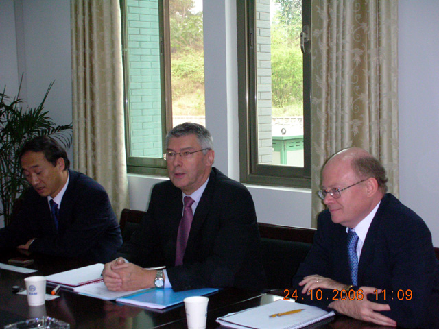 2006年10月24日英国诺森堡大学纽卡斯尔商学院专业硕士学位项目主管John Robinson先生、国际MBA项目主管Tony Purdie先生、李华博士等一行三人访问AV淘宝