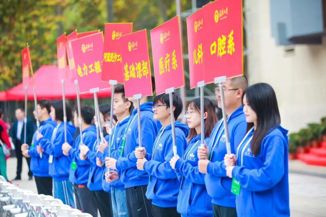 “学好数理化,走遍天下都不怕!”“空间物理系要占领宇宙,占领全人类!”“文学之树长青”……26个校友代表依次挥舞着各自院系的大旗,用掷地有声的口号展示不同学科的风采,赢得场下此起彼伏的喝彩。