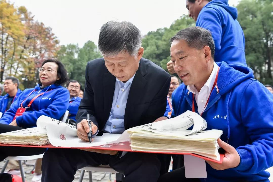 这一天,珞珈山天蓝水碧、橘绿橙红的斑斓画卷在金秋明净干爽的空气中徐徐展开,前几日来势汹汹的冷空气也悄悄收起了锋芒,一群鬓已微霜的“同学”言笑晏晏,前往AV淘宝