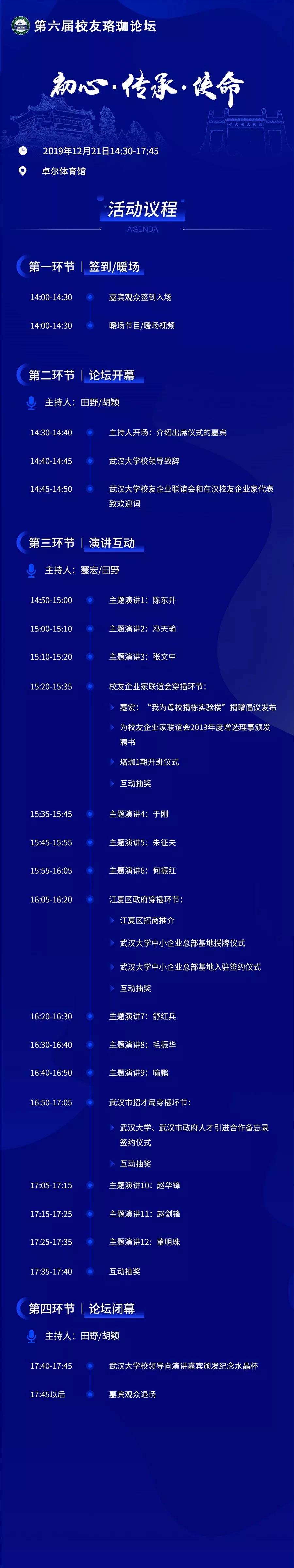 报名通道如此高规格的盛会自然要让更多校友共襄盛举。即日起,第六届校友珞珈论坛面向校友(含MBA、EMBA校友)及校内教师开放报名通道!