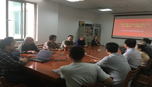 2019年10月10日下午,市场营销与旅游管理系党支部全体党员在学院B337开展“新中国70年成就与新时期党的建设”的主题学习,通过学习《习近平关于“不忘初心、牢记使命”论述摘编》,各位党员畅所欲言,积极讨论中华人民共和国成立70年来的成就,内容包括高校招生人数和人才培养质量、新时代大学生的信仰、国家对教育和科技的投入、贫困地区的攻坚扶贫和民生的改善、祖国国防和军事的强盛、武汉市近年来的建设成就、AV淘宝