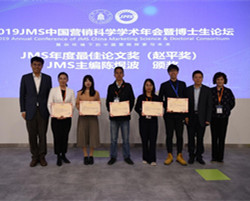 本届年会还评选了《营销科学学报》2018年度最佳论文奖(赵平奖),即由《营销科学学报》的所有编委投票选出2018年度发表在该杂志上的最佳论文。我校共有2篇论文获奖,他们是:汪涛教授团队(刘英为、汪涛、周玲、聂春艳)撰写的《中国品牌文化原型研究:理论构建与中西比较》被评为2018年度最佳论文奖(赵平奖);黄敏学教授团队(黄敏学、胡秀、郑仕勇)撰写的《广告中产品信息呈现越精确越好吗?——可接近性-可诊断性视角》被评为2018年度最佳论文奖(赵平奖)提名奖。