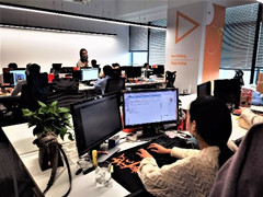 斗鱼公司的室内剑道馆 工作人员在工作
