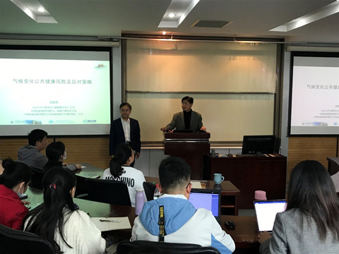 刘起勇研究员以自身所申请到的科技部973项目“气候变化对人类健康的影响与适应机制研究”为贯穿主线,向在座师生生动地讲述了其在气候、健康、风险和适应等方面的研究成果。首先,刘起勇研究员对敏感疾病筛选、脆弱人群识别、疾病负担评估、地区差异划分以及适应机制研究等五个方面的研究问题进行了详细介绍。其次,针对不同的研究问题,刘起勇研究员以“登革热”为例具体讲述了气候变化对中国媒介生物性传染病影响的研究进展,又以高温热浪为例探讨极端天气事件对中国人群健康风险研究的进展。最后,刘起勇研究员从气候-健康脆弱人群识别和风险区划、不同区域气候敏感疾病的响应和适应机制两个方面对相关研究进展进行了详细介绍。同时,刘起勇研究员也从案例研究方法、气候变化不确定性、群众风险认识等方面提出了当前研究的局限性。