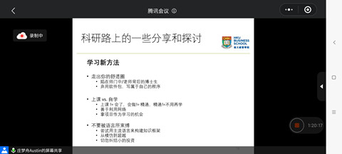 最后,庄梦舟老师还从论文选题、文章的评判标准、求知与学习新方法以及做学术研究的心态这四个方面与同学们分享了他的经验,为同学们讲授工商管理方向选题的基本思路和技巧,如何评判一篇论文的优劣和贡献度,并强调了读硕博期间要勇于突破原有局限和框架,学习新的知识与技能。期间,庄梦舟同与会师生进行了广泛而热烈的讨论,大家收获颇丰。至此,本次珞珈青年经济与管理论坛圆满落幕。(通讯员:滕洪信;审稿:崔楠)