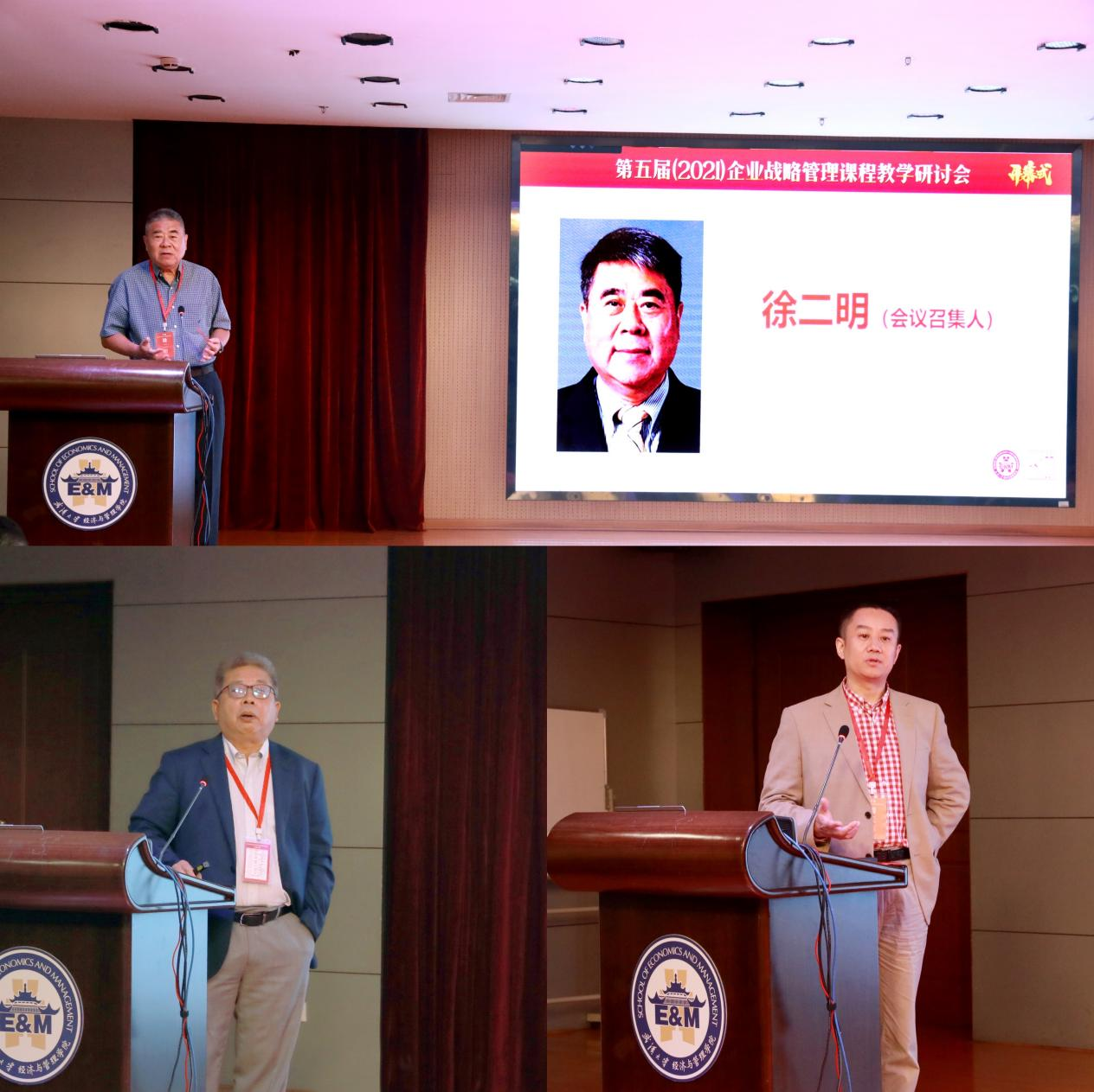 院长宋敏教授、华南理工大学蓝海林教授和中国人民大学徐二明教授分别致辞。研讨会围绕教材建设、案例开发与教学、战略咨询最新实践、数字战略、国际化战略、课程思政建设,以及一流本科专业建设等话题展开专题报告、分组讨论和企业考察。