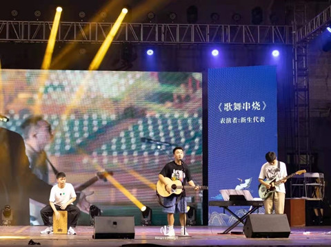 2021级本科新生迎新晚会于万千期待声中在梅园小操场拉开帷幕。晚会共分为序幕、青春畅想、逐梦飞扬、珞青启航四个篇章。