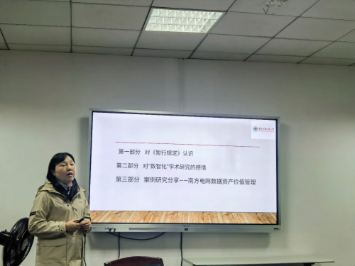 会计系主办的珞珈经管创新论坛第69期在学院举行。论坛邀请了会计系校友广东外语外贸大学会计学院王艳教授做题为“如何从会计的视角研究数据资产”的学术讲座。李青原教授、潘红波教授等学院多位老师和同学参加论坛,会议由会计系周楷唐老师主持。