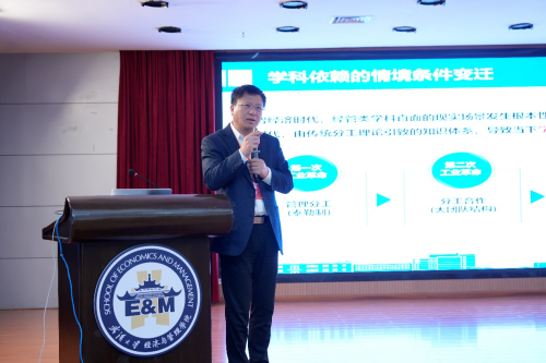 就经管类学科面临的新挑战,魏江教授指出,数智经济时代经管类学科依赖的情境条件和面向的对象场景都已发生根本性变化,而经管类学科体系总体还停留在后工业经济时代。由传统分工理论引致的知识体系,导致当下学科过度分割、专业过度细分、课程改革缓慢。今天我们的管理场景由人和物理世界的二元空间转变为人、物理世界、智能机器、虚拟世界的四元空间,经管类学科赖以存在的研究对象局限于物理空间,个体是“组织人”而非虚拟现实的“自由人”, 因而难以适应个体、组织和社会管理基本逻辑的变迁,管理场景远远落后于需求。