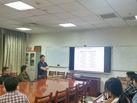 金融系余静文老师主持,孙祥、李斌、刘岩、熊琛等老师及部分学生参加。