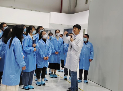 随后,同学们在工作人员的带领下,根据规定穿戴好相应的参观服与鞋套,依次参观公司自动化生产线与测试与认证中心(TCC)。讲解员引导同学们参观联想高度机械化智能化生产线,详细解释手机生产流程中不同环节的作用与意义。通过观看世界领先水平的智能机器生产与质量检测体系,同学们增进了对智能生产管理的切身了解。