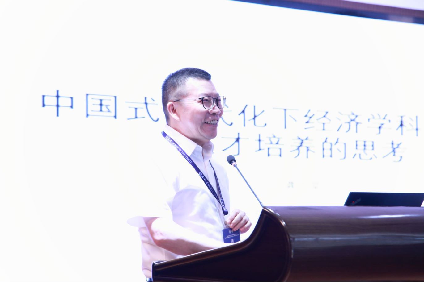 在主旨演讲环节中,美国德州 A&M 大学讲席教授田国强作了主题为“人工智能大潮下的经管学科改革与转型应对”的演讲。北京大学光华管理学院教授龚六堂则围绕“中国式现代化下经济学人才培养”进行了深刻阐述。