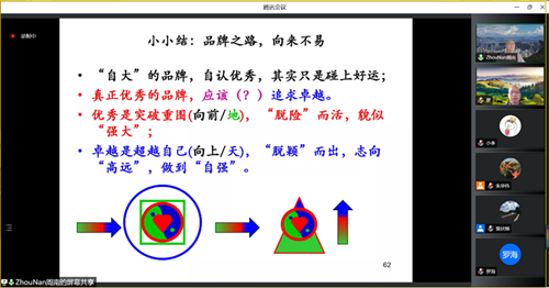 本次讲座,周南教授主要围绕如何以中国传统文化为基础展开品牌经营。品牌是企业市场活动的关键要素,也是企业最重要的资产之一。中国企业长期囿于品牌对消费者的影响力不足,难以获得品牌溢价和企业的可持续发展。中国作为世界制造大国,在从经济大国向经济强国转变的过程中,必须建设有影响力的中国品牌乃至中国名牌。为此,国务院甚至设立中国品牌日,促进中国品牌建设发展。