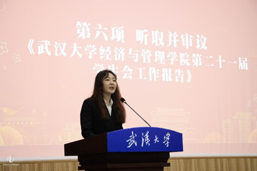 第二十一届学生会工作报告》。她以“追求理想,筑牢阵地,坚持强化政治引领;信念如磐,不忘初心,服务学生全面发展”为题,回顾过去,展望未来。过去的一年里,学院学生会加强引领,深化改革,完善制度,把握主责。展望未来,她提出新一年的学生会工作要进一步强化引领力,夯实组织力,提升服务力。