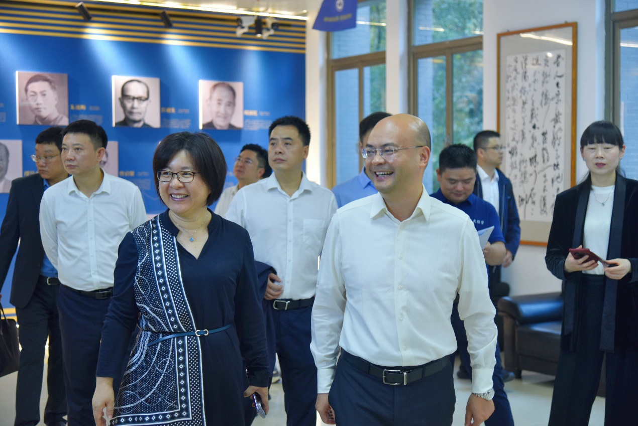 在参观过程中,文春雷与王丽萍就学院的历史沿革、党的建设、人才培养等情况进行了深入交流。文春雷对学院从学生需求出发,帮助学生适应校园学习生活,关注学生心理健康状况的举措表示赞赏,充分展现了学院的人文关怀精神。同时,文春雷还十分关注学生的实习实践活动和职业生涯规划教育,热情邀请经管学院的学子前往乐山市开展社会实践,并希望有更多的优秀武大学子能够赴乐山工作,共同建设乐山。