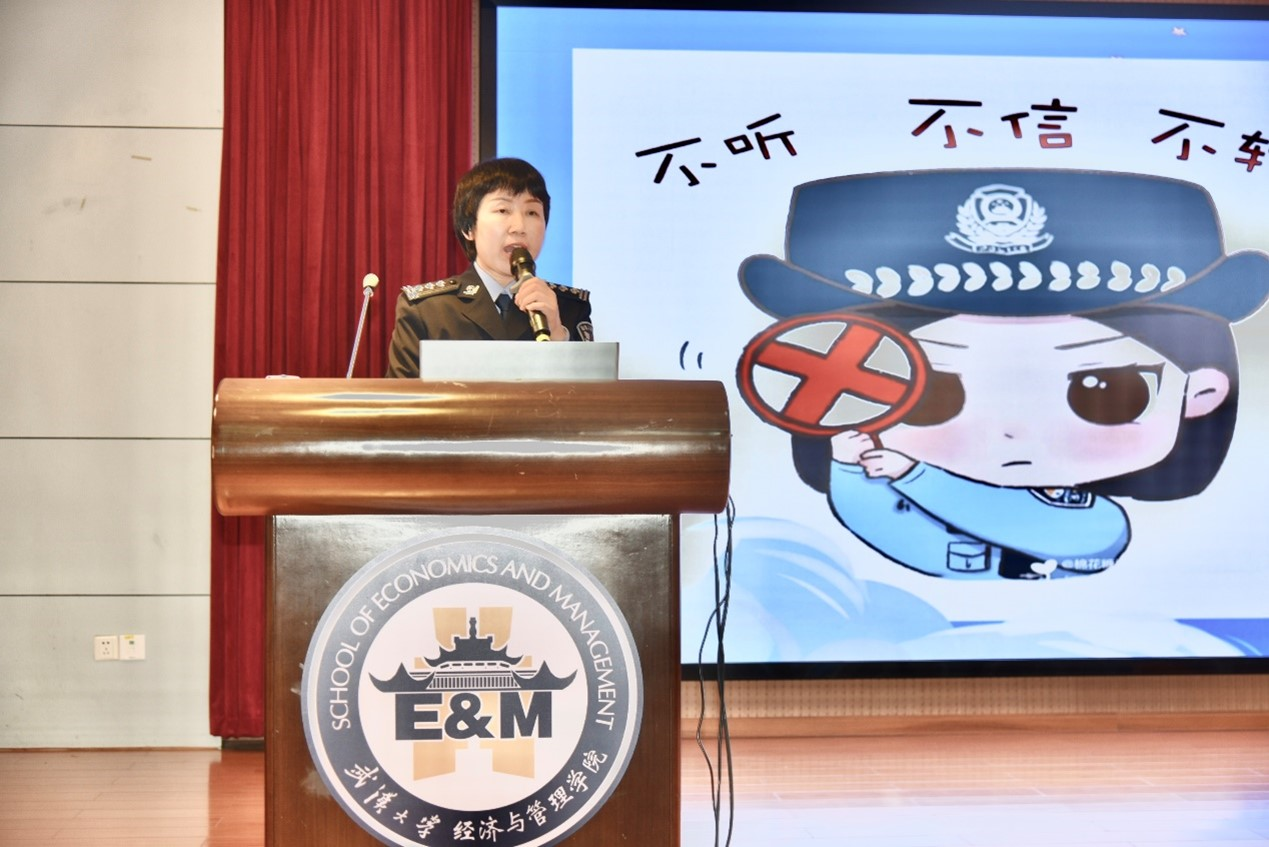11月7日下午,学院举办“防范电信诈骗,平安护航师生”主题安全教育大会,珞珈山派出所副所长孟玲、警官张超,AV淘宝