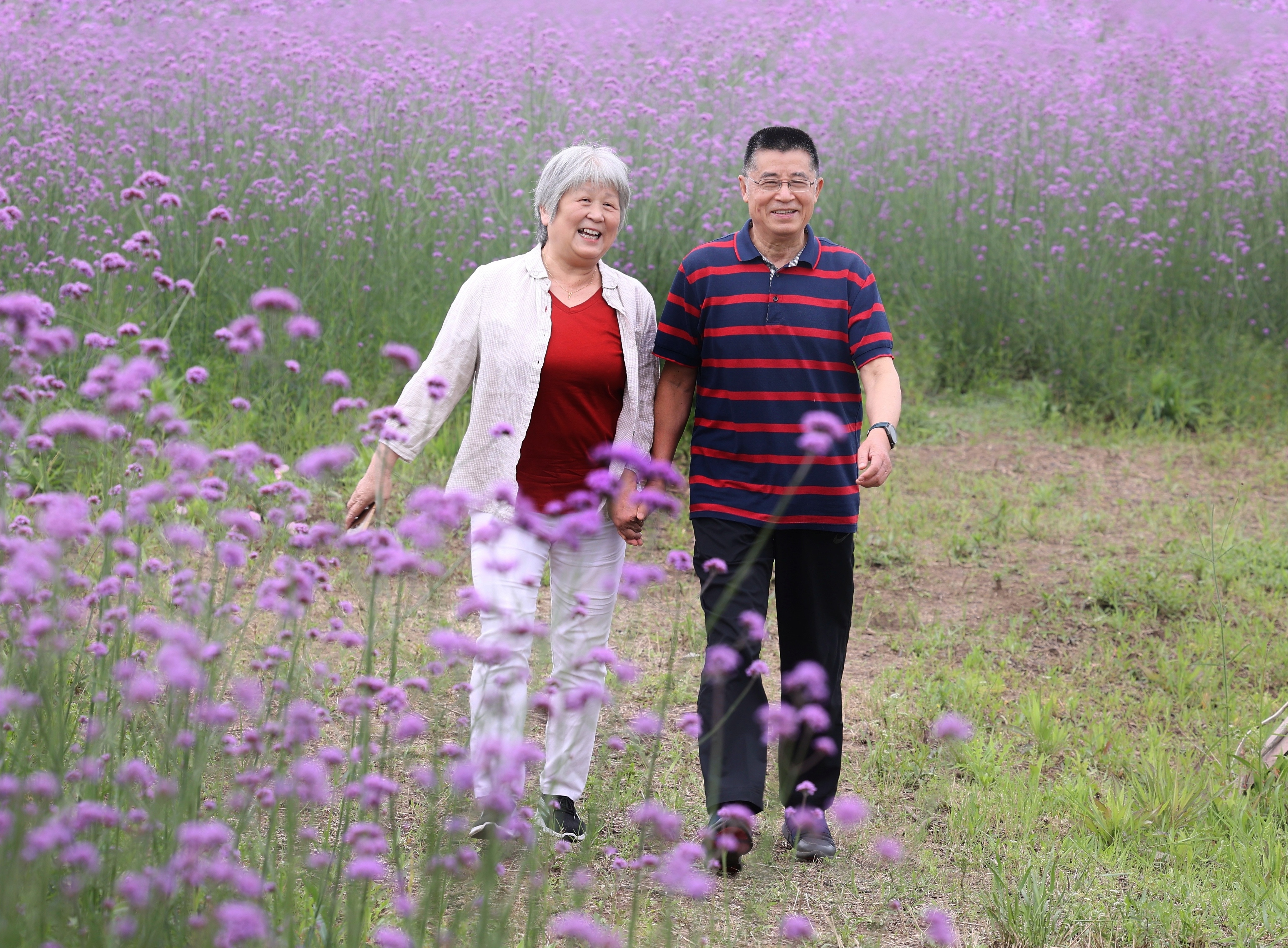 组织50多位离退休教职工到东西湖最美西湖赏花春游,迎风摇曳的薰衣草连绵起伏,花香馥郁。严清华教授和夫人晏三梅老师牵手徜徉花海,幸福相伴,留下最美的合影。