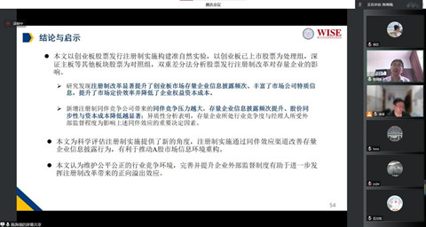 该项研究主要关注注册制改革对存量上市企业的信息披露行为的影响。陈海强教授详细阐述了该项研究的研究背景、计量方法、影响机制、研究发现等内容,同时也指出了该项研究的突破和注册制改革的现实意义。