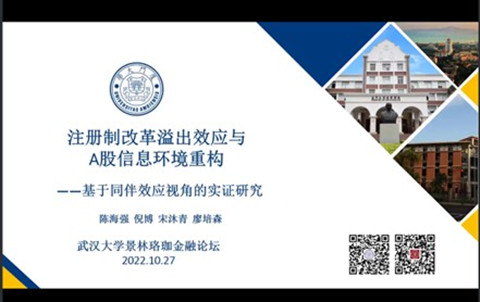 金融系承办的景林珞珈金融论坛第223期通过线上方式举行,厦门大学陈海强教授为我校师生带来了题为“注册制改革溢出效应与A股信息环境重构”的学术报告。讲座由金融系李斌老师主持,六十余名师生参会。
