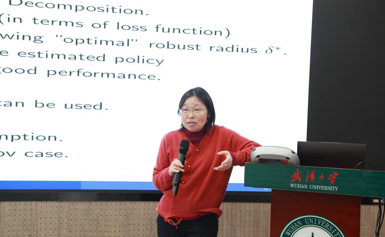 世界计量经济学会院士、美国艺术与科学院院士、耶鲁大学陈晓红教授做关于离线强化学习中分布奇异性的报告。离线强化学习历史数据中隐含的策略分布,可能与决策最优的策略分布并不绝对连续,导致分布奇异性。陈老师首先介绍强化学习中状态–动作值函数Q满足的Bellman方程和计量经济学中条件矩约束之间的联系。然后把离线强化学习转化为一个鲁棒控制问题,通过带有分布约束的优化来求解。最后陈老师列举应用该方法的实际例子,包括在多臂老虎机问题上的应用。