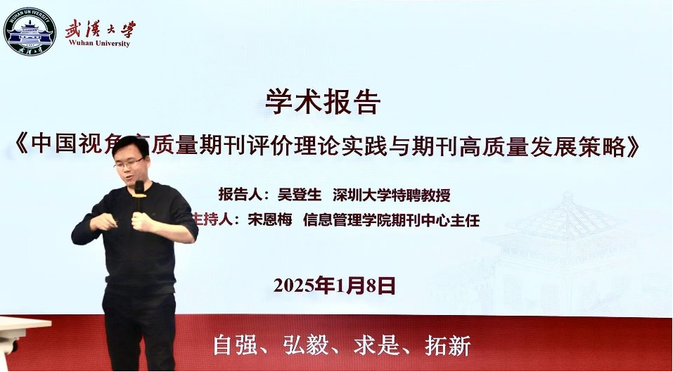 《珞珈管理评论》编辑部、信息管理学院《信息资源管理学报》编辑部共同邀请,深圳大学特聘教授、《中国管理科学》副主编、FMS管理科学期刊列表研制组主要成员吴登生来我校做学术报告并就期刊发展问题进行座谈。本校二十余名期刊负责人和骨干编辑与会。