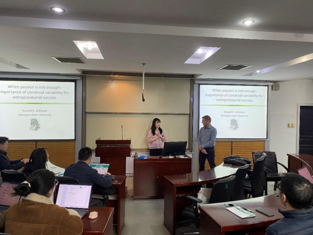 3月9日,珞珈经管创新论坛第124期在学院举行。密歇根州立大学(Michigan State University)伊利·布罗德商学院(Eli Broad College of Business)的Russell E. Johnson教授作题为When passion is not enough: The importance of construal variability for entrepreneurial success的专题讲座。学院涂乙冬、刘艳等老师及众多研究生和本科生参与讨论。