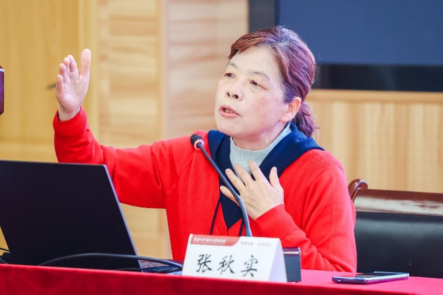 随后,会议特邀中共湖北省委党校教授张秋实讲授《中共党史上的第一次紧急会议:八七会议》专题党课。张教授从会议召开的历史背景、过程、意义以及瞿秋白对会议的贡献四个方面进行了解读。她认为第一次国共合作破裂是八七会议召开的最大背景,在关系党和革命事业前途命运的危急时刻,八七会议纠正了党内右倾错误,改组了中央领导机构,确定了土地革命和武装反抗国民党反动派的总方针,推动中国革命走向新阶段,因此具有重大历史意义。会议使武汉成为中国共产党独立领导武装斗争的重要策源地,为中国工农红军的创建和发展奠定了基础。