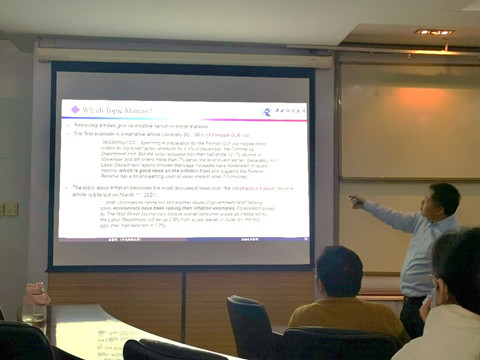 随后,姜富伟教授对该项研究的动机进行了阐述,经济类新闻报道能够应用于通货膨胀率的预测,一方面经济报道如实记录了一些重大经济事件;另一方面,经济报道也对当前经济状况提供了有效信息。紧接着,姜富伟教授梳理了文章的大致框架并具体介绍了该项研究的数据和方法,研究数据来自1984年-2021年出版在华盛顿邮报的88万篇报道,研究采用了主题模型中的LDA方法,从所有的报道中提取出180个具有代表性的主题。