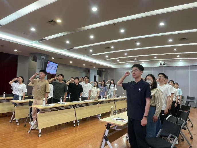 会前,活动还专门安排了重温入党誓词环节,在研究生工作办公室主任沈仕雄的带领下,全体与会党员面向鲜红党旗庄严宣誓,铿锵誓言彰显了毕业生党员扎根基层、报效祖国的坚定信念。