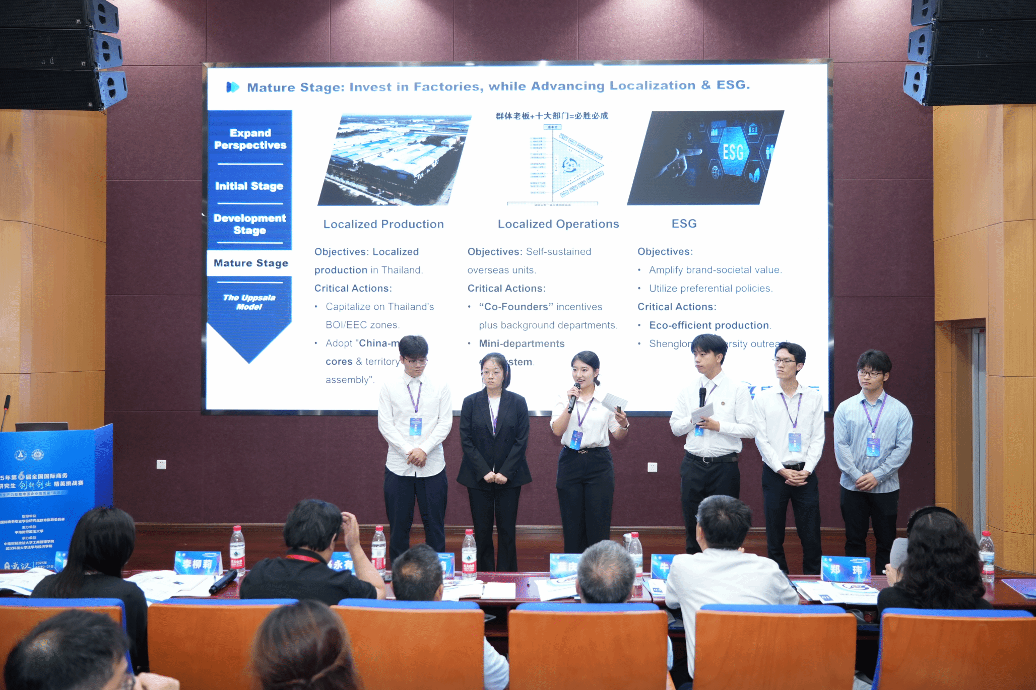 代表队针对决赛案例企业寻求独立出海的迫切愿望,深入分析其业务模式与行业特点,论证企业海外扩张的最佳区位,为之提出清晰明确的实施方案与出海路线图,获得全赛一等奖。