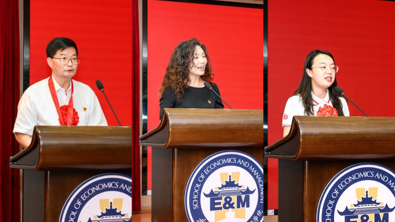 “优秀共产党员”代表杜莉同志分享了她的深刻感想。她回忆道,三年前在人文馆聆听遥感学院张祖勋院士的报告时,深受触动:一名共产党员必须始终与祖国同频共振,永葆“生逢其时”的使命感与责任感,以实际行动践行“请党放心,强国有我”的铮铮誓言。她号召全体党员教师以更加饱满的精神状态投身教育事业,让党旗在教育一线高高飘扬。