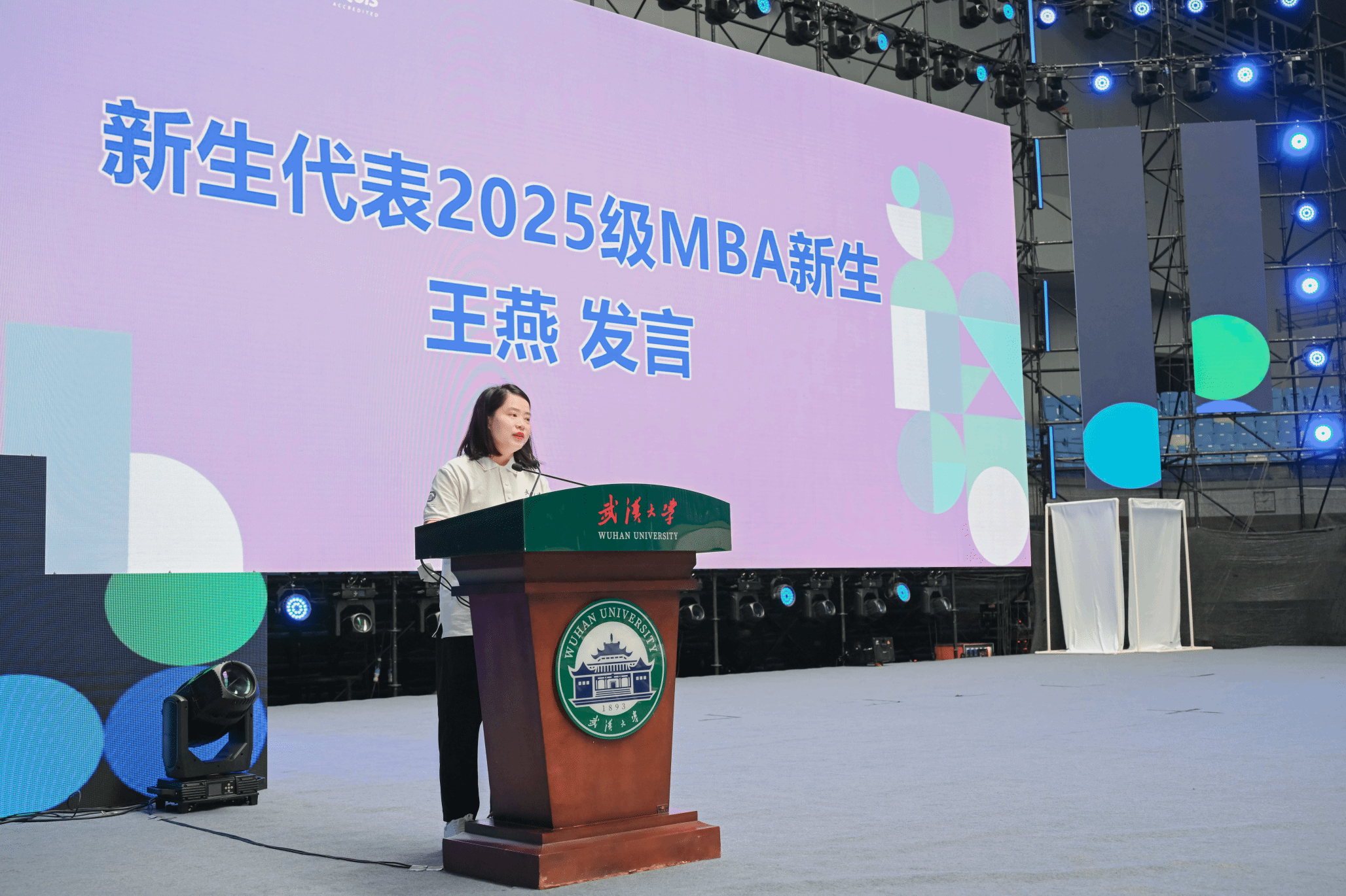 2025级MBA新生王燕代表全体新生发言。她鼓励同学们珍惜学习机会,以赤子之心追求真知,以工匠精神砥砺前行,成为有温度、有底蕴的武大学子。