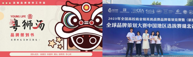 ,与汤喻头啖汤餐饮有限公司深度合作,致力于该公司的品牌策划。团队基于汤喻头啖汤公司的未来规划,以“为你的生活加注新生”为品牌愿景,植根于醒狮文化,链接广东文化与甘醇汤品,以“鲜·先”、“靓·亮”、“和·合”为品牌核心价值,打造受年轻人青睐的主打汤产品的餐饮企业。经过市场调研与对品牌转型升级策划的探讨,团队以“国潮、养生-新生”的核心定位推进门店改造与logo设计,并推出一系列线上线下活动,其策划方案中设计的周边产品与舞狮等宣传方案也已投入实践应用。