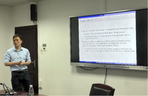 杨中超老师展示了题为“Delayed Crises and Slow Recoveries”的学术报告。基于所构建的信贷驱动危机的理性预期模型,该研究为解释信贷繁荣会导致严重金融危机的原因提供了一个新的视角。金融机构间对投机业务基本面的非同步意识会导致金融危机延迟发生;而且这种延迟是一种极其低效的过度延迟,具体会导致资本配置不当和经济复苏缓慢。对于所构建模型的政策启示,杨中超老师从政府的信贷政策和税收政策两个角度提供了多条重要意见。