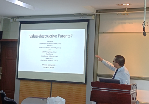师生带来了题为“Value-Destructive Patents”的学术报告。本次讲座由金融系余静文老师主持,众多师生参加讲座。