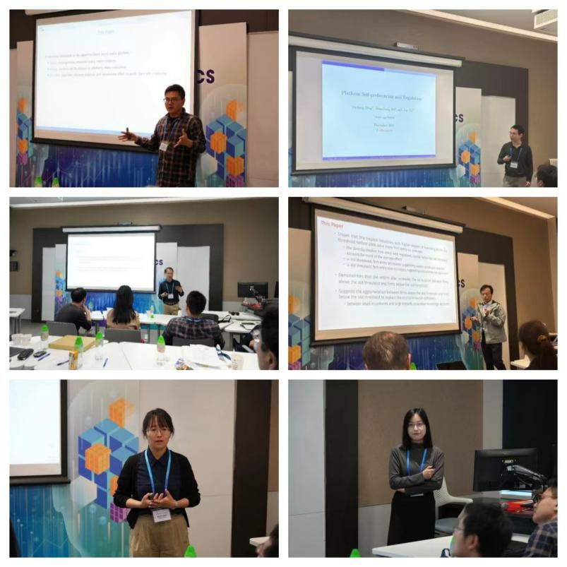 本次研讨会学术交流成果丰硕,来自美国北卡罗莱纳大学教堂山分校李飞(Fei Li)教授分享了题为《Algorithmic Attention and Content Creation on Social Media Platforms》的研究,通过理论模型揭示平台算法在注意力分配中的“双峰”非单调特征;经济系丁宇澄副教授以亚马逊为例,探讨平台自营模式的监管边界,提出适度偏向性推荐可能提升社会总效用;香港岭南大学丘东晓(Larry Qiu)教授基于中国数据,实证发现国际专利申请可使企业出口额增长13.4%,并显著促进新市场进入;经济系熊瑞驰聚焦2006年《公司法》改革,揭示政策性降低注册资本门槛通过“涟漪效应”激发区域创业活力。
