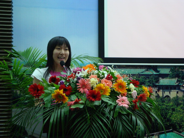 06级本科生冯舒洋代表党员发言,她通过回顾自己的入党历程表明了对党的赤诚,并表示所有的党员都应用科学发展观武装自己,充分发挥党员的模范带头作用,随时准备为党奉献一切。