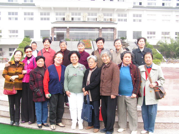 车行一个半小时抵达武汉生物工程学院。一幢幢新建教学大楼、学生宿舍、2万余平米的图书馆及电子阅览室……美丽优雅的校园环境、浓郁的学习氛围吸引着大家。老人们情不自禁聚在一起合影,将一幅幅人与校园和谐相融的画面载入相册。