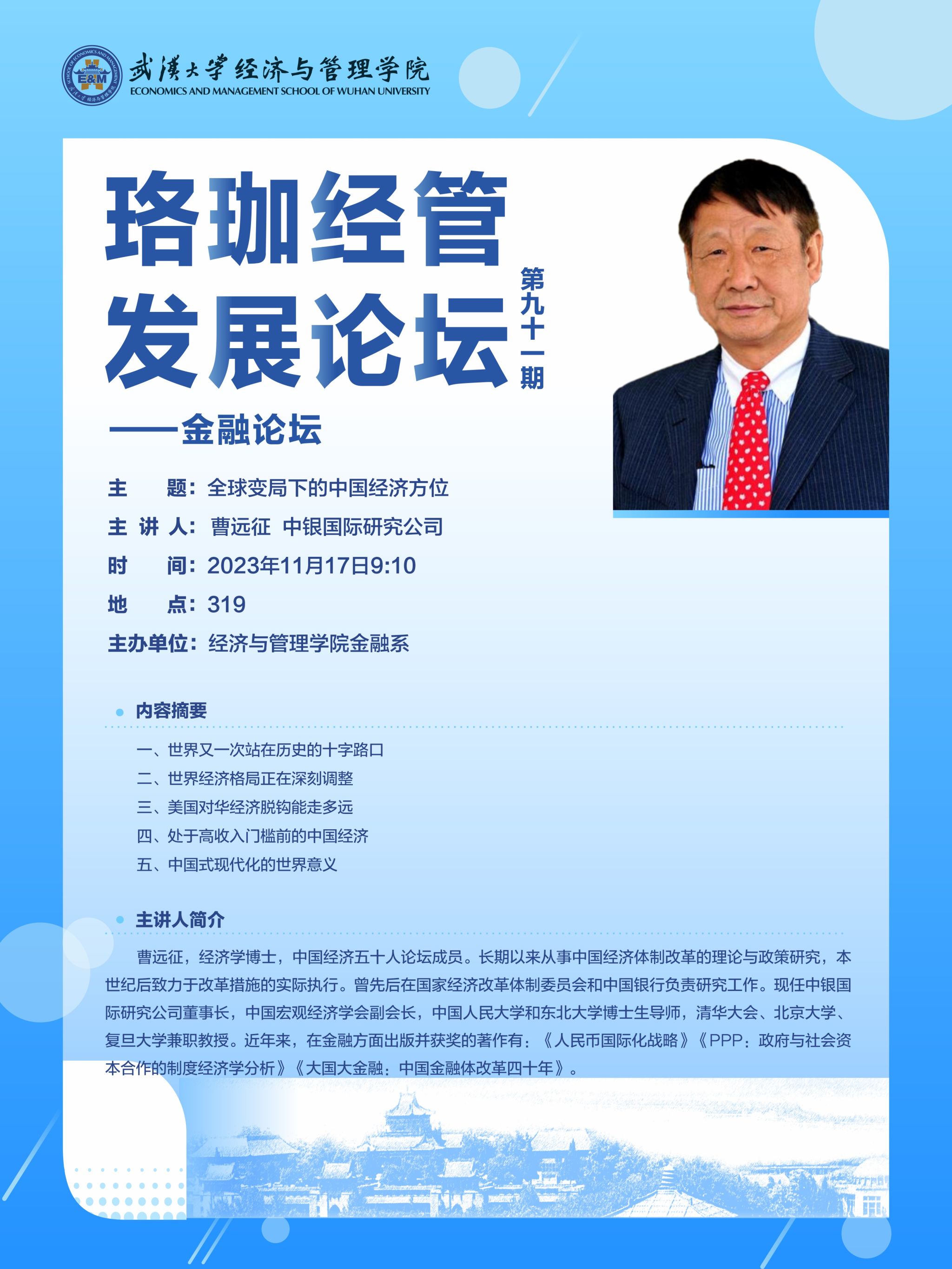 珞珈经管发展论坛第九十二期——世界经济论坛