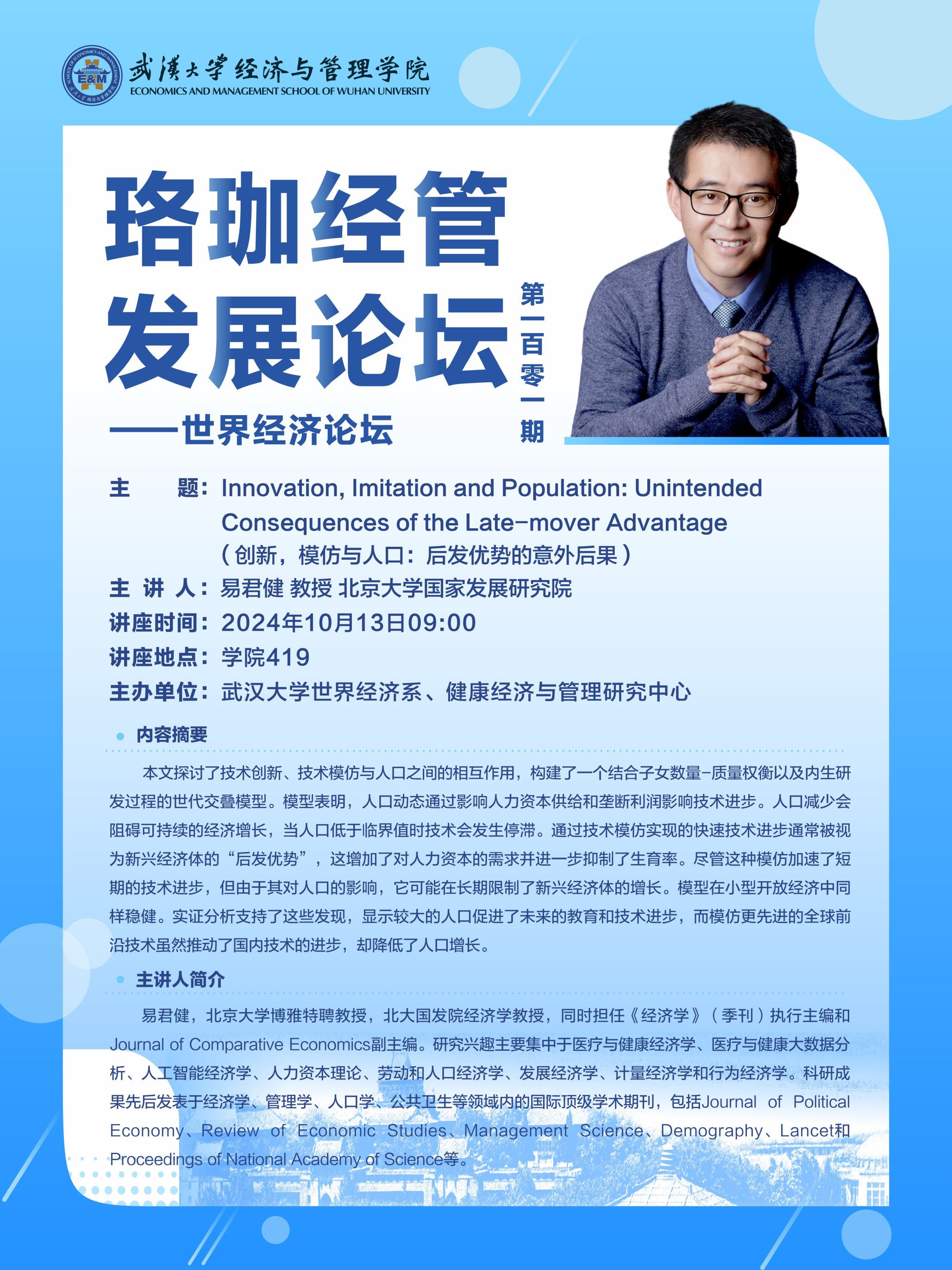 讲座预告|珞珈经管创新论坛第107期——经济学论坛
