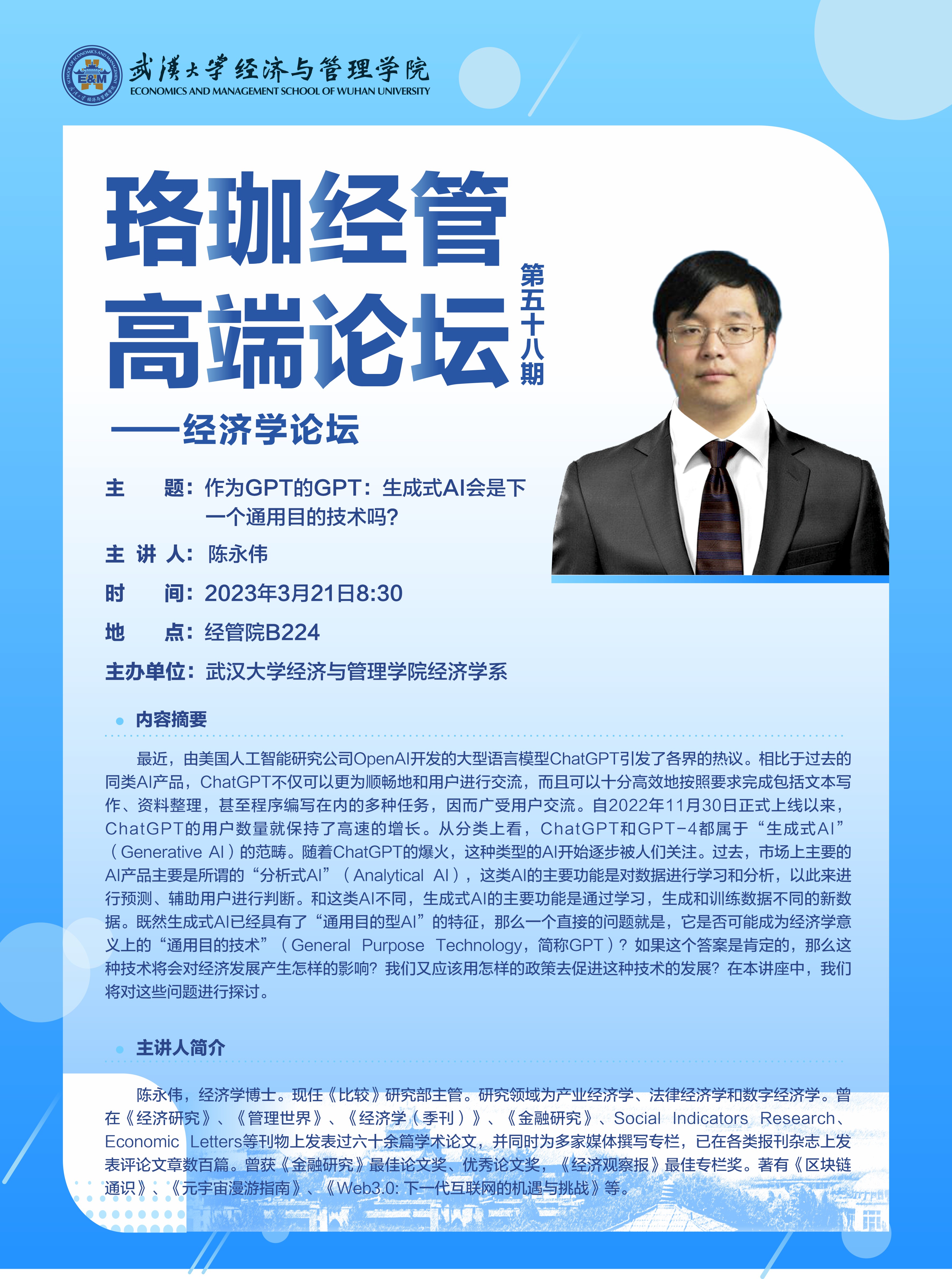 珞珈经管高端论坛第五十八期——经济学论坛