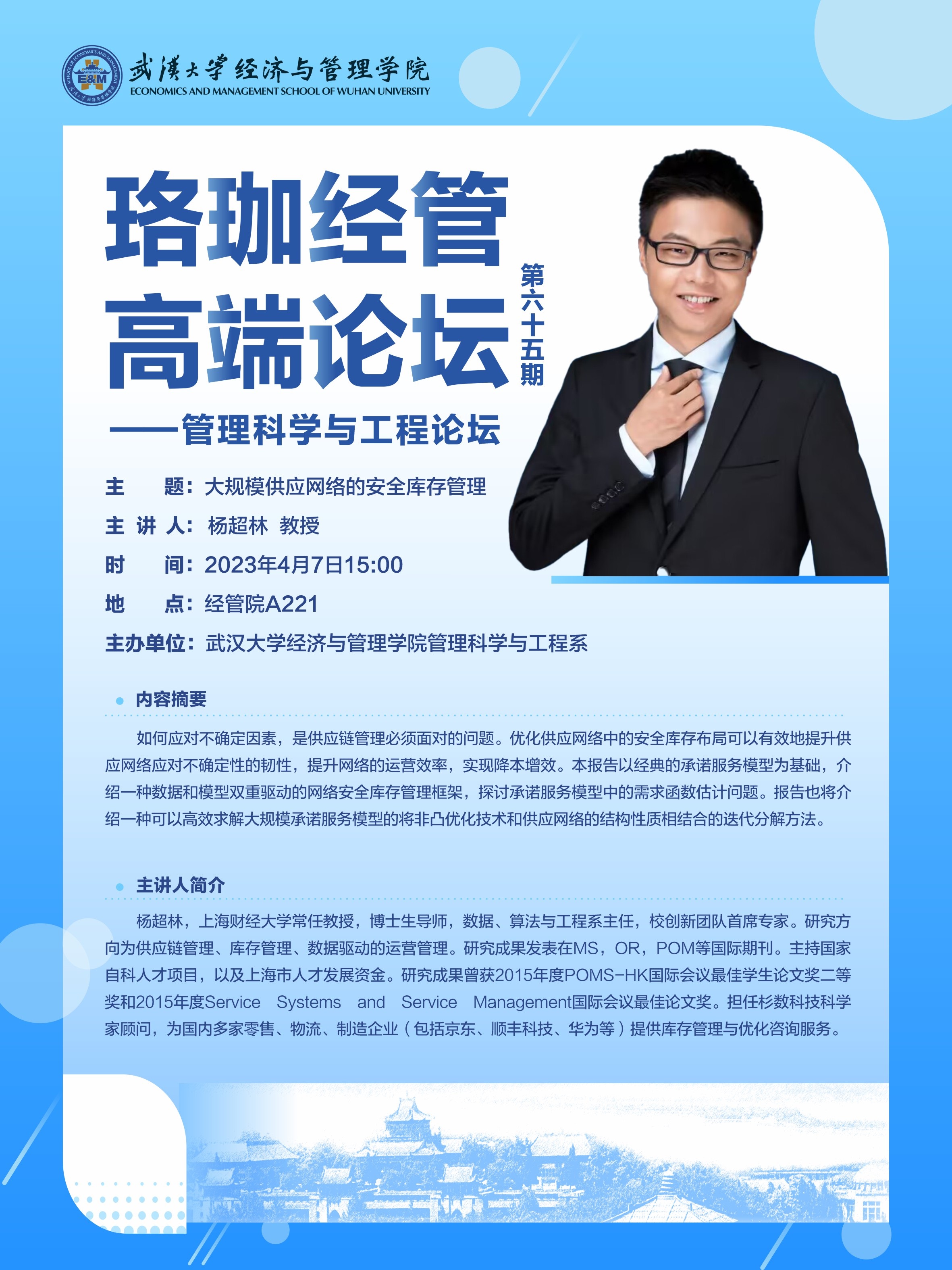 珞珈经管高端论坛第六十五期——管理科学与工程论坛