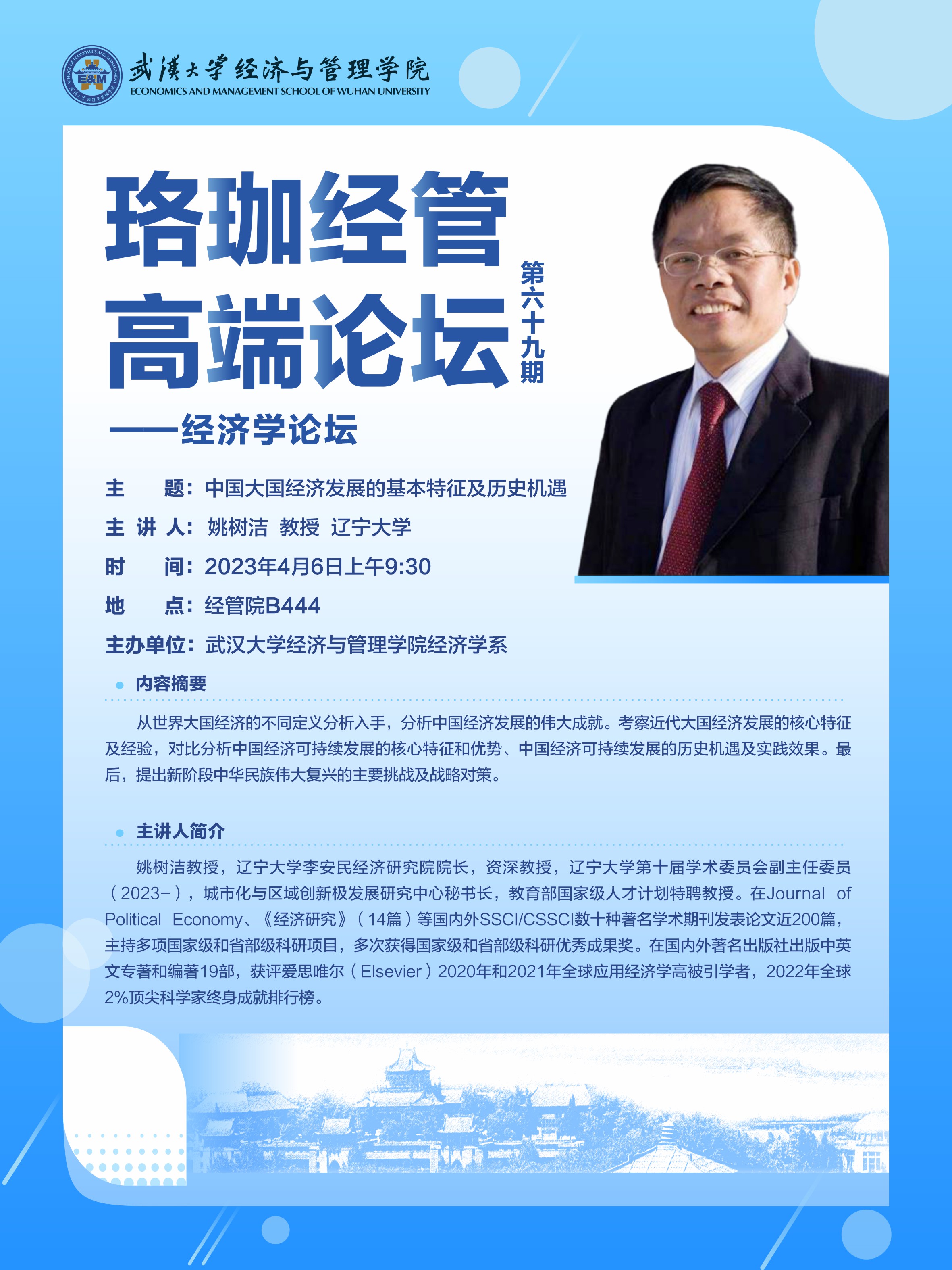 珞珈经管高端论坛第六十四期——数理经济与数理金融论坛