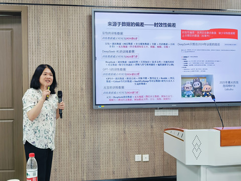 授课伊始,曾伏娥教授对人工智能时代生成式AI的飞速发展进行了简单介绍。随后,从数据、算法、交互三个维度,系统解析了生成式AI存在的决策偏差。针对上述偏差,曾教授提出了具体解决路径:通过增强数据,构建私域知识库、拓展AI的认知边界,克服小世界偏差;增强运行规则,尤其是时空关联规则等,完善算法规则体系,克服运行规则偏差;通过提供角色设定、情感引导、丰富语义情境、添加范本等方式增强AI理解能力,同时提前对齐提示词,优化交互指令,来克服符号偏差。