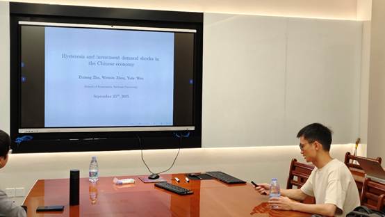 与会师生围绕研究的投资品相对价格的定义、如何区分永久性冲击、投资需求冲击和供给冲击的区别、投资需求冲击和中性需求冲击的识别、校准部分的参数设置等关键问题展开深入探讨。祝梓翔教授结合研究设计和数据细节对提问进行了详尽回应。