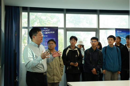 步入智算云企业,首先映入眼帘的是科技感十足的前台接待区域,同学们由此开启探索之旅。在工作人员的热情引领下,同学们来到成果展示区,了解该公司的主营项目、优势竞争力和已经取得的成果。