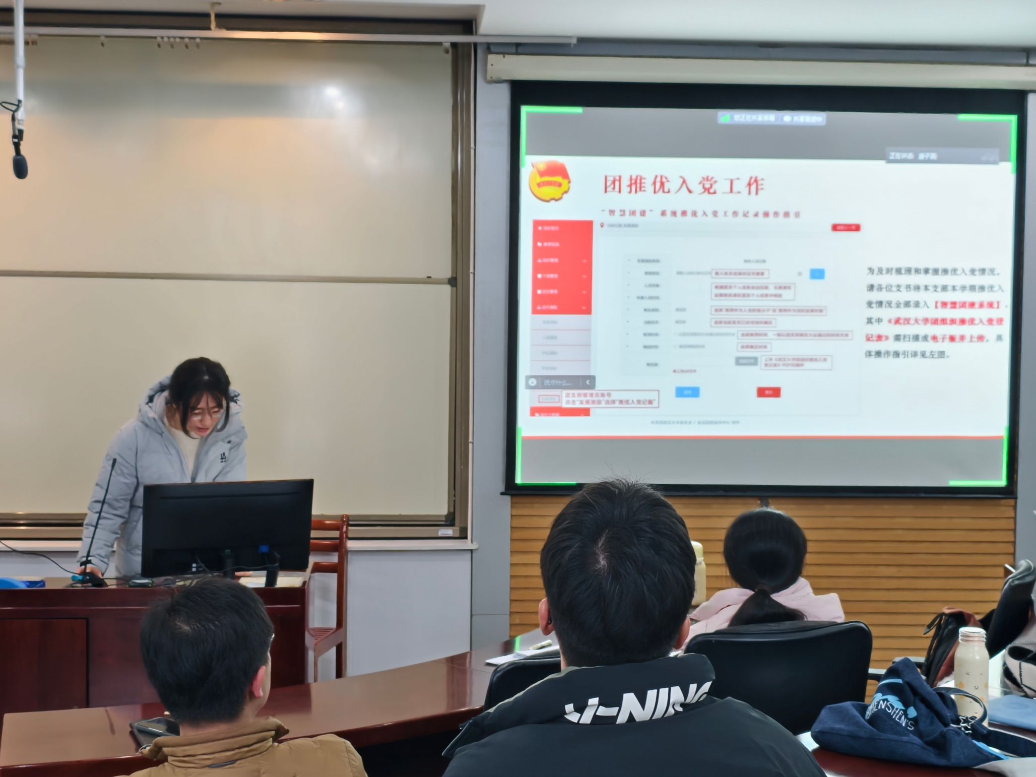 接着,李欣蔓同学为大家介绍了日常团务的相关内容,包括三会两制一课、推优入党、评优评先、智慧团建系统、支委关联方面的具体内容、主要任务、评议流程、相关规则、时间安排等,为支书们的日常工作提供指导。
